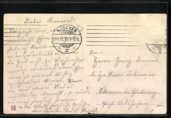 gelaufen 1910 als Feldpost, Abriebspuren oben links und rechts, guter Zustand