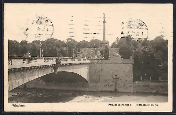 AK München, Prinzregentenbrücke und Friedensdenkmal