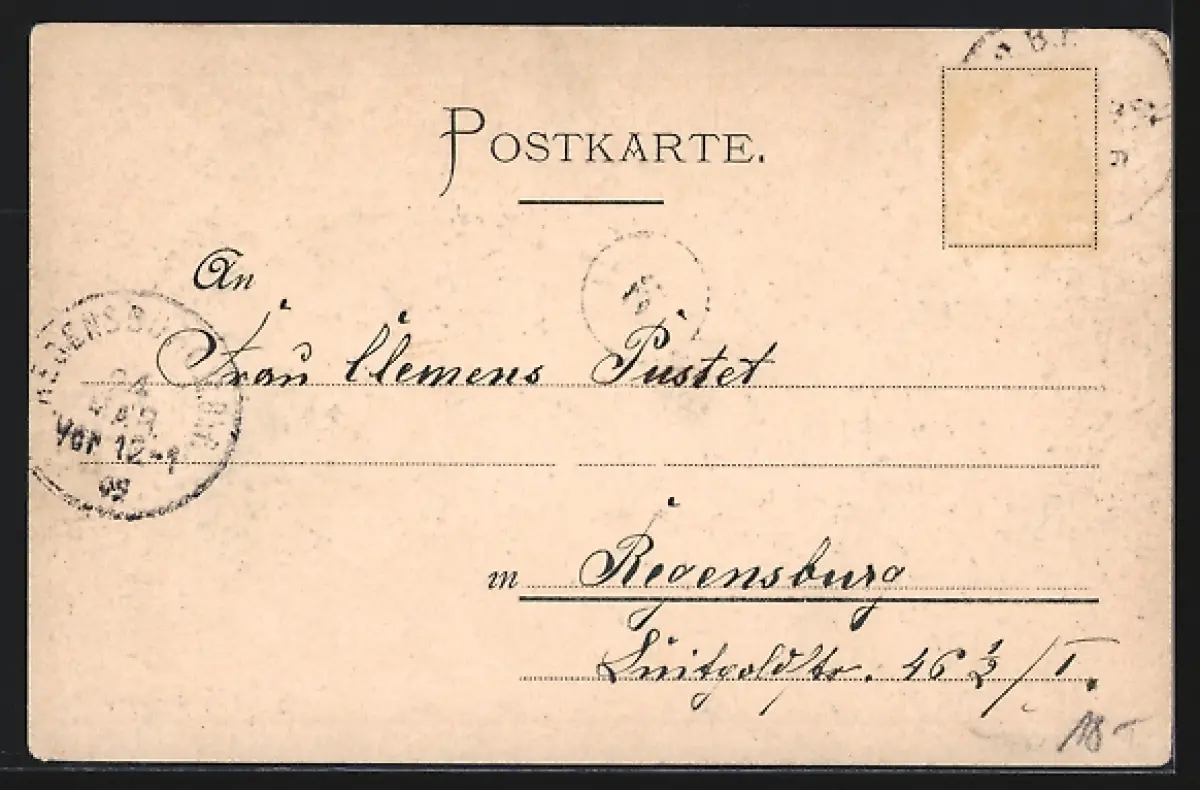 alte Ansichtskarte, gelaufen, Briefmarke entfernt, guter Zustand