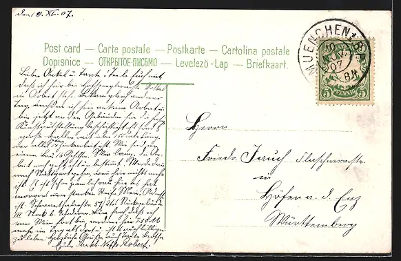 alte Ansichtskarte, gelaufen 1907, Stempelspur, guter Zustand