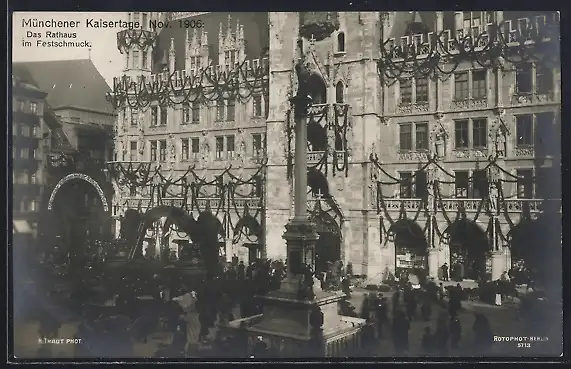 AK München, Rathaus im Festschmuck, Kaisertage Nov. 1906
