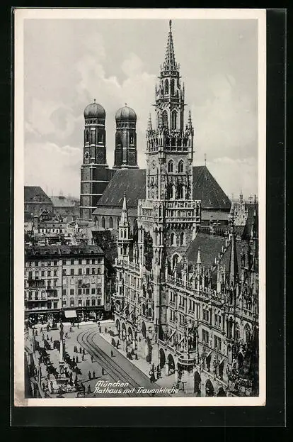 AK München, Rathaus mit Frauenkirche