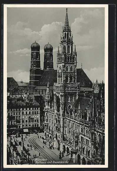 AK München, Rathaus mit Frauenkirche