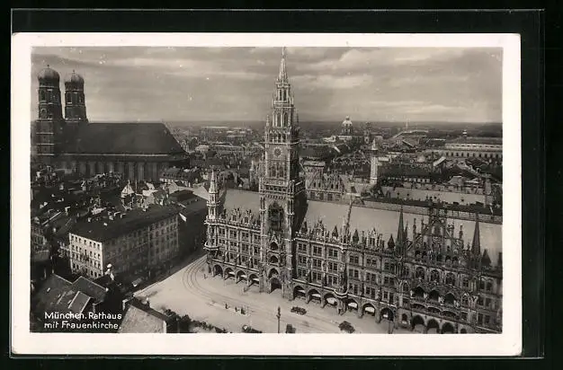 AK München, Rathaus und Frauenkirche aus der Vogelschau