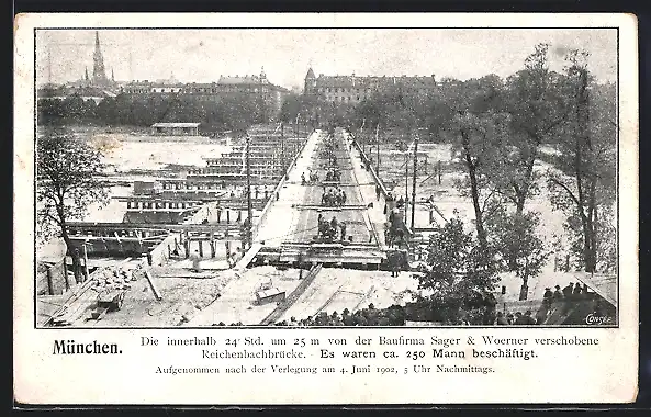 AK München, Reichenbachbrücke nach der Verlegung am 4. Juni 1902