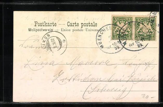 alte Ansichtskarte, gelaufen 1902, guter Zustand