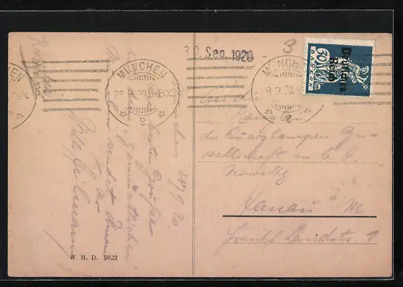 alte Ansichtskarte, gelaufen 1920, Stempelspur, guter Zustand