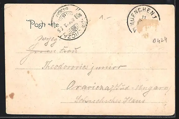 alte Ansichtskarte, gelaufen 1903, Briefmarke entfernt, rückseitig Oberflächenschaden, Eckknicke re., Bugspur li. mittig, guter Zustand
