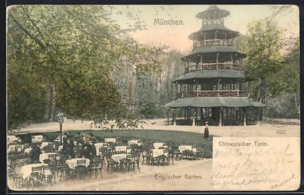 AK München-Schwabing, Chinesischer Turm, Englischer Garten