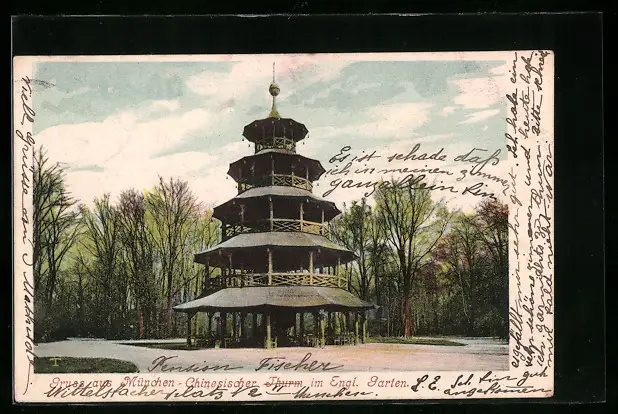 AK München-Schwabing, Chinesischer Turm im Engl. Garten