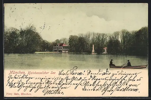 AK München-Schwabing, Kleinhesseloher See mit Ruderboot