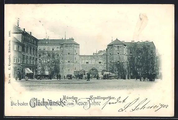 AK München, Sendlingerthor, Panoramaansicht, Neujahrsgruss