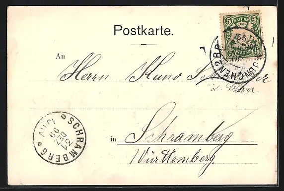 alte Ansichtskarte, gelaufen 1899, Stempelspur, guter Zustand