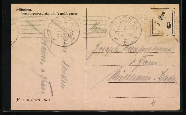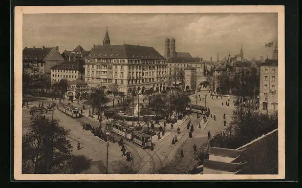 AK München, Sendlingertorplatz mit dem Sendlingertor, Passanten und Strassenbahnen