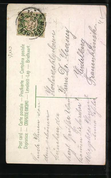 alte Ansichtskarte, gelaufen 1908, Bugspur oben rechts, guter Zustand