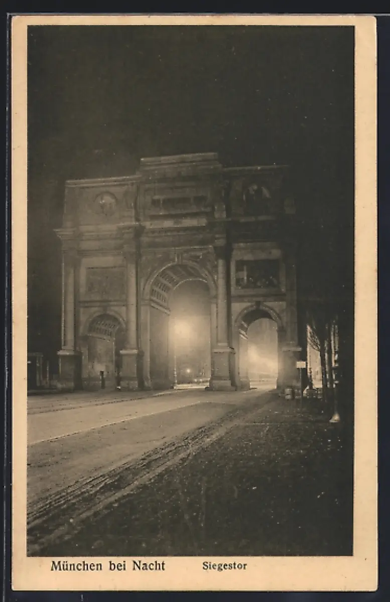 AK München, Siegestor mit Strassenpartie bei Nacht