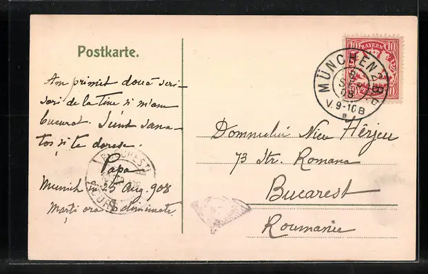 alte Ansichtskarte, gelaufen 1908, Stempelspur, guter Zustand