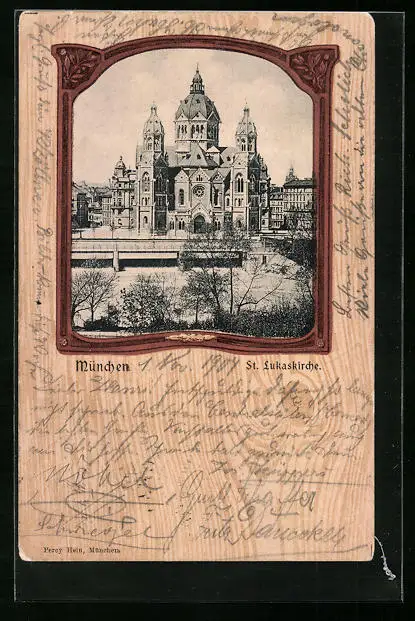 AK München, St. Lukaskirche im Passepartoutrahmen