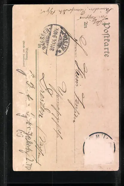 alte Ansichtskarte, gelaufen 1904, Briefmarke entfernt, rückseitig Oberflächenschaden, Stempelspur, Bugspur li. unten, guter Zustand