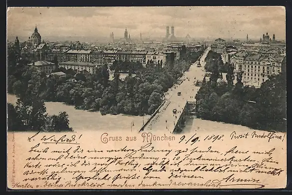 AK München, Stadtansicht mit Flusspartie
