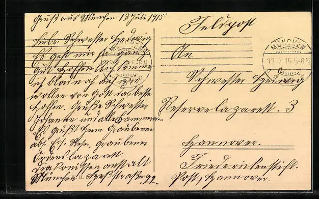 alte Ansichtskarte, gelaufen 1915 als Feldpost, Stempelspur, guter Zustand