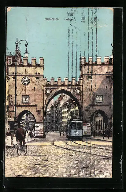 AK München, Strassenbahn am Karlstor