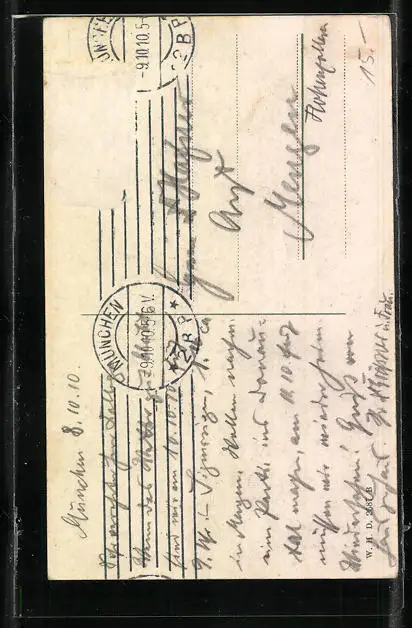 alte Ansichtskarte, gelaufen 1910, Briefmarke entfernt, rückseitig Oberflächenschaden, Stempelspur, guter Zustand