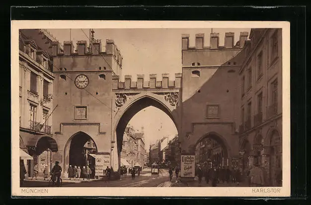 AK München, Strassenbahn am Karlstor