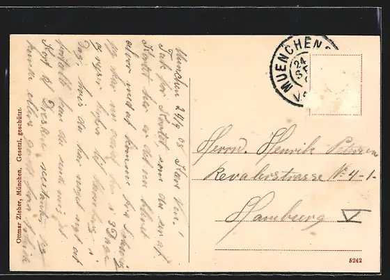 alte Ansichtskarte, gelaufen, Briefmarke entfernt, rückseitig Oberflächenschaden, guter Zustand
