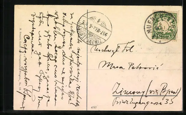 alte Ansichtskarte, gelaufen 1907, Stempelspur, guter Zustand