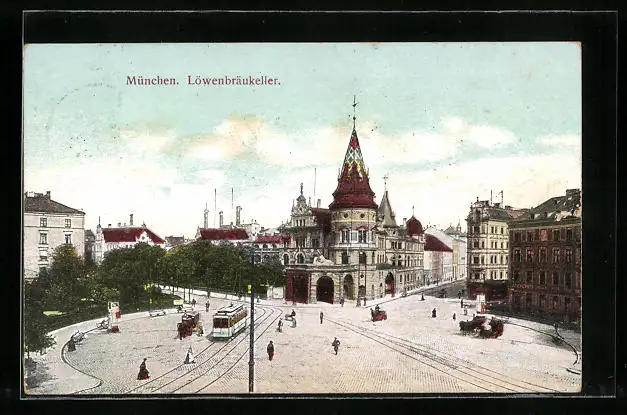 AK München, Strassenbahn am Löwenbräukeller