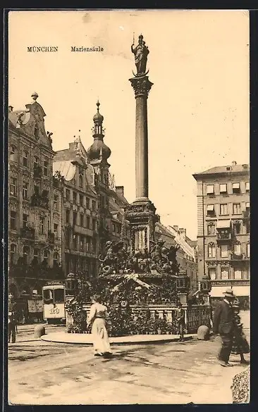 AK München, Strassenbahn an der Mariensäule