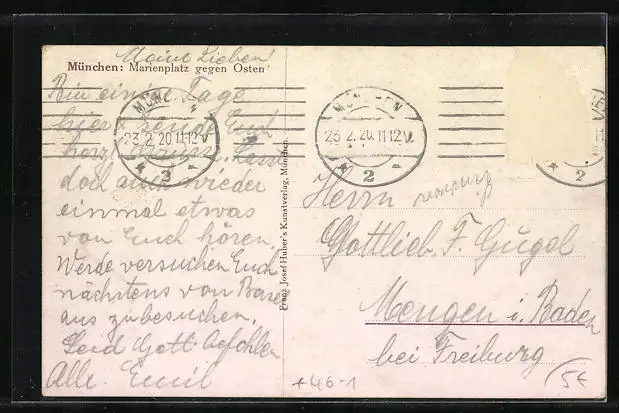 alte Ansichtskarte, gelaufen 1920, Briefmarke entfernt, rückseitig Oberflächenschaden, guter Zustand