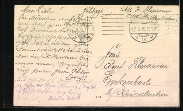 alte Ansichtskarte, gelaufen 1916, Albumspuren, Stempelspur, guter Zustand