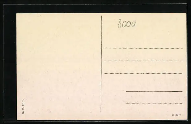 Personenbezogene Daten auf der Rückseite der Karte wurden durch blauen Textmarker unkenntlich gemacht. Die blauen Stellen sind auf die Vorderseite durchgeweicht und wirken sich negativ auf das Postkartenfoto aus
