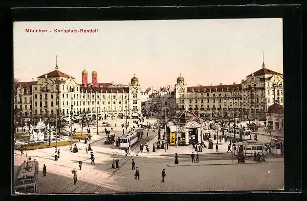 AK München, Strassenbahnverkehr auf dem Karlsplatz-Rondell