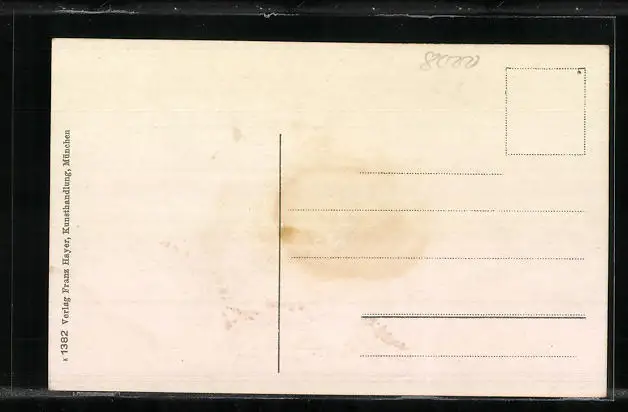 Personenbezogene Daten auf der Rückseite der Karte wurden durch blauen Textmarker unkenntlich gemacht. Die blauen Stellen sind auf die Vorderseite durchgeweicht und wirken sich negativ auf das Postkartenfoto aus