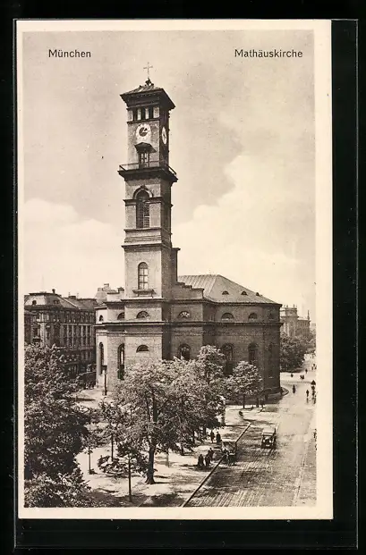 AK München, Strassenpartie bei der Matthäuskirche
