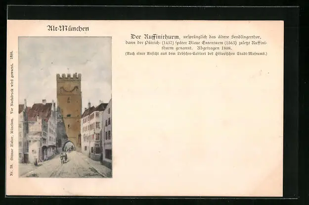 AK München, Strassenpartie mit Ruffinithurm, Rindermarkt