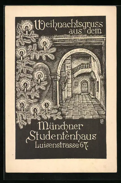 AK München, Studentenhaus Luisenstrasse 67, Weihnachtsgruss