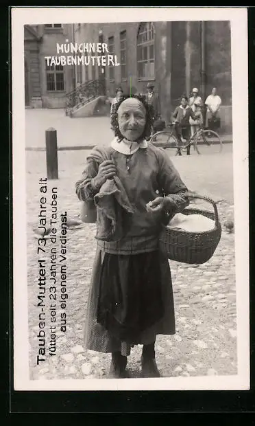 AK München, Tauben-Mutterl, 73 Jahre alt
