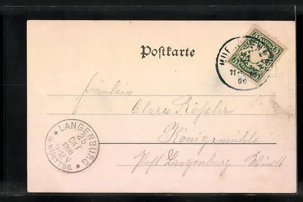 alte Ansichtskarte, gelaufen 1900, guter Zustand