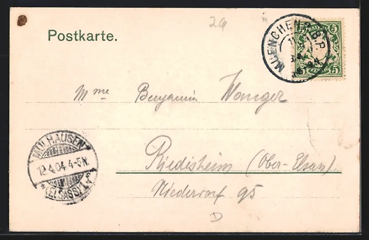 alte Ansichtskarte, gelaufen 1904, Bugspur li. mittig, guter Zustand