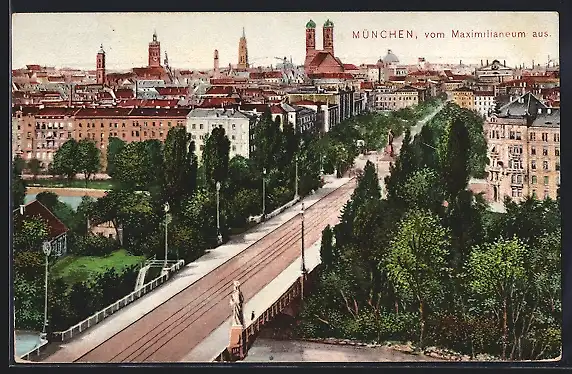 AK München, Teilansicht mit Strassenpartie vom Maximilianeum aus