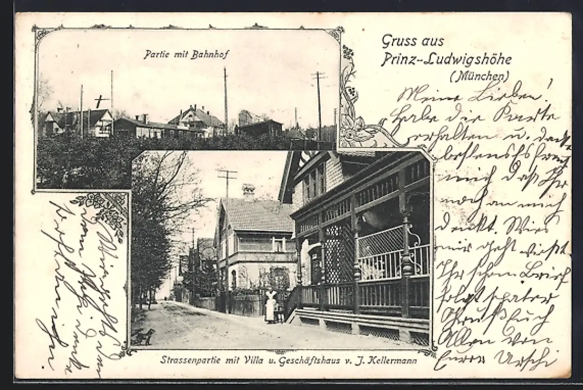 AK München-Thalkirchen, Gasthaus, Prinz Ludwigshöhe, Partie mit Bahnhof