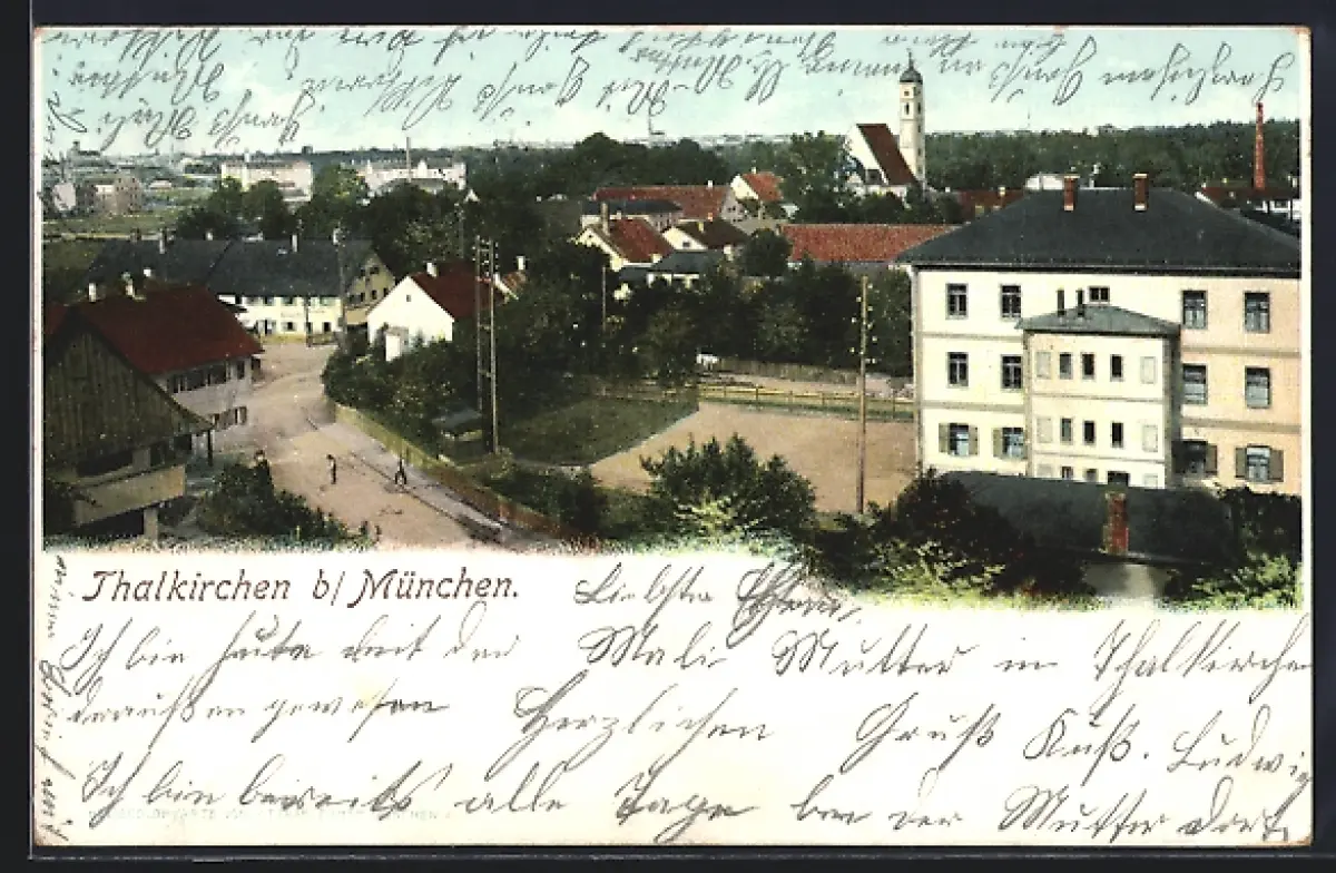 AK München-Thalkirchen, Ortspartie mit Kirche