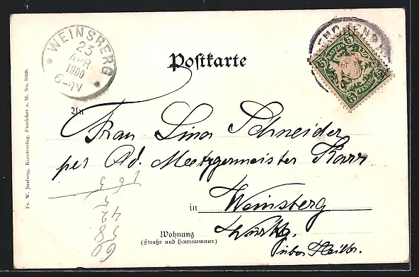 alte Ansichtskarte, gelaufen 1900, guter Zustand