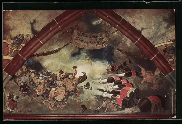 AK München, Wandmalerei Der Champagnerkrieg im Ratskeller
