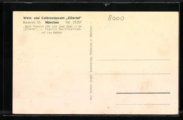 AK München, Wein- und Caférestaurant Zillertal, Barerstrasse 55