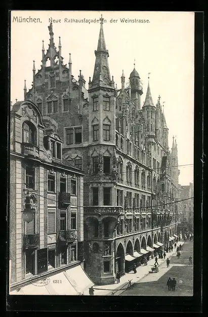 AK München, Weinstrasse mit Neuer Rathausfassade